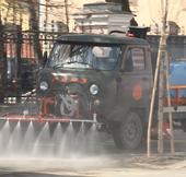 Не на всех рязанских улицах ещё растаяли сугробы, но там, где снега уже нет, началась весенняя уборка. Сегодня коммунальщики мыли тротуары.
